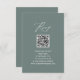 Tarjeta de RSVP de Boda Minimalista con Código QR en Verde Salvia y Letra Elegante. Celebre su día especial con este diseño de invitación de boda elegante y hermoso para embellecer su ocasión especial. Todos los textos están preestablecidos para que pueda personalizarlos fácil y rápidamente con sus propios datos.