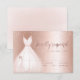 Las tarjetas de RSVP de Quinceañera elegantes presentan un vestido rosa suave de acuarela con detalles de brillo de rosa oro falso y fondo, genial para la fiesta de cumpleaños de los 15 años.