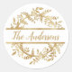 Elegante, corona botánica en oro atractivo espera la adición del nombre de su familia. Este diseño de hojas entrelazadas le da un toque clásico y refinado que le dará un toque hermoso a las invitaciones, notas de agradecimiento y tarjetas de vacaciones salientes este año.