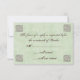 Esta elegante invitación nupcial, una hermosa personalizado de la época verde pálido RSVP, puede ser personalizada fácilmente con sus propios nombres, fechas y otra información relevante. Incluso si no estás buscando invitaciones a la boda, ¡eso también está bien! Puedes personalizar la información para que se adapte a todas las ocasiones, como fiestas de compromiso, aniversarios, fiestas de cumpleaños y muchos otros tipos de celebraciones. Instrucciones para personalizar tu RSVP: Simplemente escribe tu propia información. en cada cuadro de texto (arriba, derecha, bajo ''Personalize It"). Cuando haya terminado de editar cada cuadro, haga clic en cualquier lugar fuera del cuadro para completar las ediciones y pasar al siguiente. Puede ver su progreso en cualquier momento, situando el ratón sobre la gran imagen de previsualización para obtener una vista ampliada.