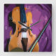 Elegante violín en seda morada, reloj cuadrado
