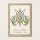 Con una hermosa imagen religiosa de oro de la Santísima Virgen María, Nuestra Señora de la Gracia colocada sobre una "M" aria con flores azules y una oración en la espalda para la novia y el novio. Se pueden modificar todo el texto y las fuentes.