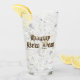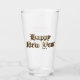 Viejo inglés Lettering Happy New Year Gift, Beinking Glass, Tumbler with Faux Gold Old English Typography y tu texto detrás.