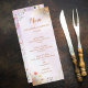 Los huéspedes podrán deleitar a sus huéspedes con nuestro elegante menú de Bodas rosados con flores silvestres. Con un magnífico telón de fondo rosa adornado con flores silvestres y acentos de oro rosa, la carta completa perfectamente el tema de la primavera o del boda de verano. El estilo rústico bohemio y bohemio añejo añade un toque de elegancia y encanto, haciendo que su experiencia gastronómica sea aún más especial. Personalizar con tu selección de menús para crear un ambiente bonito y coherente en la recepción de tu boda.
