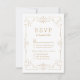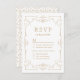 Elegancia vintage ornamentar diseño de marco giratorio en color dorado sobre fondo blanco editable. Patrón Damask con diseño monograma en la parte posterior, moderno, elegante y elegante, perfecto para bodas vintage, boda art deco todo el año. Color de fondo editable para que coincida con los colores del tema boda. Personalizado tu propia tarjeta RSVP para tu juego de invitación a la boda. Vea todas las piezas coincidentes de esta colección "Gold Modern Classy boda" a continuación.