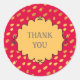 Elegante y adorable pegatina rojo y dorado "Gracias". El texto, el tipo de letra, el tamaño del tipo de letra y el color son completamente personalizables, así que hágalos propios.