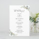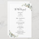 acuarela eucalipto follaje y texto negro. Puede personalizar el texto y los colores de esta plantilla de programa de boda.