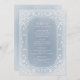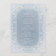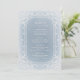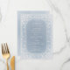 Elegante marco vintage ornamentado con crema sobre un suave fondo azul polvoriento, romántico y sofisticado, excelentes cartas de menú para bodas vintage, boda romántico y bodas de invierno. Vea todas las piezas coincidentes de la colección.