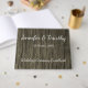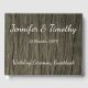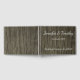Este libro de visitas básico para bodas o recepciones matrimoniales incluye el mensaje "Libro de la Ceremonia Boda", los nombres de la pareja casada y la fecha de recepción de la boda. También tiene un fondo con un patrón rústico de madera. Se podría usar para grabar mensajes felices para la pareja recién casada.