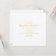Esta sencilla y elegante invitación a una boda dorada cuadrada es perfecta para su moderno boda minimalista blanco y dorado. El diseño presenta un tipo de letra oro contemporáneo mínimo acompañado de caligrafía formal. ¡Manténgalo como está, o elige personalizarlo con tu propia obra de arte o fotos!