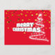 Este es un bonito y elegante fondo de color rojo con un árbol de plata y una postal navideña purpurina de oro.