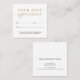 Sencilla y elegante tarjeta de personalizable para el salón de belleza (pelo, maquillaje, uñas). Diseño elegante con fondo blanco claro y texto dorado.