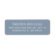Etiquetas clásicas de dirección de devolución. Fuentes serif y sans serif blancas sobre fondo azul polvoriento. Péguelas en la solapa frontal izquierda o en la parte posterior de los sobres y paquetes pequeños.