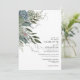 Elegante y romántico terruño suculento botánico en tonos azul y verde sabio. Una plantilla de invitación a la boda inspirada en la naturaleza para cualquier época del año.