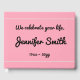 Este simple libro de visitas funerarias o conmemorativas incluye el mensaje "Celebramos tu vida", y el nombre personalizado y las fechas de nacimiento/muerte del individuo que ha fallecido. Se podría usar para registrar recuerdos aficionados de alguien que ha fallecido recientemente.