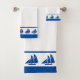 Elegante y bonito yate azul sobre blanco Bath Towl Set.