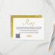 Tarjeta RSVP de color oro elegante y moderno. Un fondo de patrón oro muy elegante. Fácilmente alterado a su información y código QR.