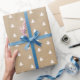 Elegantes árboles de Navidad mínimos en papel Kraf
