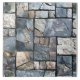 El embaldosado de piedra angular está bien acondicionado y combina las piedras naturales en diferentes tonos azules, grises y marrones.