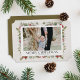 Precioso borde moderno de Navidad de invierno con acebo y bayas sobre fondo beige, 1 foto tarjeta de vacaciones. Personalice con el nombre de su familia y año.