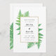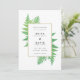 Los helechos de color verde agua enmarcan una elegante caja dorada y blanca con un sencillo y moderno salven la redacción de la fecha. Este diseño botánico es perfecto para la escapada tropical, o bodas modernos y rústicos simples llenos de blanco, oro y vegetación.