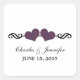 Elegantes y dulces pegatinas de bodas de corazón con un elegante borde giratorio adornado con un par de corazones morados. Estos modernos stickers de boda son la elección perfecta para una moda y una boda elegante. Fácil de personalizar, simplemente agregue los detalles de su boda en los campos de texto proporcionados. Haga clic en "Personalizar" para buscar opciones de personalización adicionales.