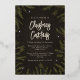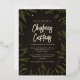 Esta elegante invitación del Partido de los Navidades tiene un fondo negro y gris en textura, ramas de abetos verdes ilustradas y verdaderas estrellas brillantes de Relieve metalizado dorado. Esto sería perfecto para un Fiesta de cena de Navidades o un cóctel para adultos o para cualquier fiesta de familia o Navidades en el lugar de trabajo.