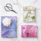 Tres hojas de moda de papel de envoltura que presentan fotos de cerca de las flores de la hidrangea blanca, una hidrangea de azul a rosa y un rododendro rosado para ofrecerle hermosas opciones. Este papel de envolvimiento de moda es especialmente apropiado para bodas de verano elegantes, duchas de novias y cumpleaños.