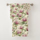 Hermoso juego de toallas con preciosas magnolias rosas en acuarela.