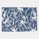 Hermosa y elegante hoja de papel de envolvimiento de color azul y blanco con ramas y hojas.