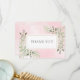 Con características de vegetación botánica hojas de eucalipto sobre un fondo de acuarela rosa que enmarca su mensaje de agradecimiento colocado en una tipografía elegante. Puede personalizar con su propio mensaje de agradecimiento en el reverso o si prefiere agregar su propio mensaje escrito a mano elimine el texto. ¡Una forma perfecta de decir gracias! Diseñado por Thisisnotme©