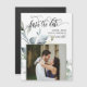 Esto ahorra la fecha de la tarjeta magnética con elegantes formas de hojas de follaje color agua verde y hermosa caligrafía y simple fuente de tipografía serif con un marco fotográfico cuadrado sobre un fondo blanco para un limpio aspecto minimalista y moderno, que es una hermosa manera de informar sobre su próximo boda o retiro. Sólo personaliza el texto y añade un toque personal con una hermosa foto de la pareja. Nota: La elegante caligrafía de la frase "Guardar la fecha" y "invitación formal a seguir" junto con las disposiciones sobre hojas de eucalipto de color verde acuático y otras obras de arte y elementos gráficos no pueden editarse, eliminarse ni moverse. Están arreglados.