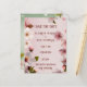Diseños de la invitación a la boda de la Boda con Floral Elegante R.S.V.P Esta hermosa invitación a la boda muestra un elegante diseño floral con una delicada rama adornada con suaves flores de cerezo rosa. Los tonos claros de las flores y las elegantes ramas oscuras curvadas exudan romanticismo y belleza intemporal, lo que lo convierte en la elección perfecta para las parejas que desean celebrar su amor con estilo. El diseño destaca: Rubor suave y paleta rosa claro: las flores se representan en un tono rosa suave y romántico, proporcionando un ambiente sofisticado y apacible, ideal para bodas de primavera y verano. Aspecto minimalista y moderno: Con un fondo de gradiente claro, este diseño crea una sensación de sencillez y elegancia, permitiendo que el foco permanezca en los detalles de la pareja. Estética Natural: La floración floreciente del cerezo añade un ambiente natural y orgánico, representando nuevos comienzos y el florecimiento del amor. Uso versátil: Este diseño es perfecto para una variedad de artículos de papelería boda, incluyendo invitaciones, tarjetas para guardar la fecha, tarjetas RSVP, tarjetas de agradecimiento y más. Tanto si se trata de una temática boda rústica, moderna o de inspiración jardín, este diseño floral de flores ofrece una invitación armoniosa y elegante que dejará una impresión duradera a sus huéspedes. Opciones de personalización: Personalice los nombres, la fecha de boda y los detalles del lugar para crear un toque único para su día especial.