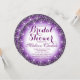 Elegantes invitaciones a la ducha marrón redondo con un diseño púrpura y violeta oscuro con un elegante diseño floral. Esta invitación circular a la ducha de matrimonio le hará que se fije en su diseño único. Color completo en ambos lados. La espalda tiene las iniciales de la novia y el novio.