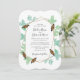 Este diseño presenta un elegante diseño monarca con mariposa y hojas. El marco geométrico dorado está rodeado de hojas de acuarela vintage. Las mariposas naranjas y negras se sienten atraídas por la vegetación. Patrón de hojas de Damasco con tonos de color verde. El reverso muestra un par de mariposas descansando en la hoja de acuarela. La combinación de colores crea un estilo sofisticado, moderno y de moda. Elegante diseño de invitación a la boda con elementos modernos. La sencilla configuración de la tipografía le da un estilo distinto. También están disponibles artículos de papelería para bodas y otros formatos de invitación para bodas.