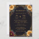 Este diseño presenta un impresionante marco botánico floral de flores amarillas con un frondoso follaje verde sobre un fondo limpio y negro. Perfecto para crear una temática sofisticada y natural de boda, esta obra de arte es ideal para planear mesas, invitaciones y otras papelería bodas. Ya sea que esté planeando una boda rústica en el jardín o un evento botánico elegante, este versátil diseño le dará un toque de encanto y elegancia a su día especial. ¡personalizar que se adapte a tu celebración única!