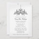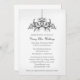 Invitaciones personalizadas y elegantes a la ducha de novia con una lámpara de araña gris de fondo gris y blanco. Personalizar completamente esta invitación a la ducha de novia haciendo clic en "personalizar" para más opciones de tipos de letra y colores de letra que se pueden encontrar en la lista desplegable "editar" para la selección de color de la fuente.