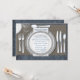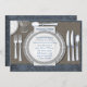 Bonito, manteles de damasco azul elegante y porcelana plateada para el boda de la plantilla de invitación a la cena. Puede personalizar fácilmente esta elegante invitación a la cena con los detalles de su evento en el estilo de letra, color y redacción de su elección.