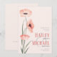 Estas invitaciones a bodas de 5 x 7 pulgadas son elegantes y presentan adornos salvajes en tonos coral acuarelas sobre un fondo de coral claro. Agregue su sitio web boda para crear su propio código QR.