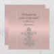 Elegante Baptismo Cruzado de satén rosado - Invite a sus huéspedes con una impresionante carta de satén perla con un magnífico diseño de cruz perla. El texto de ejemplo mantiene el lugar para los detalles de la cristalización en el reverso.
