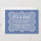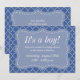 Elegantes invitaciones para la ducha de bebé para ser madre. | Invitaciones Personalizados. Texto de invitación personalizado y color de fondo. Diseño azul y blanco con hermoso patrón de cuatrefoil.¡Es un niño!