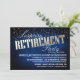 Si estás planeando un fiesta sorpresa especial para el retiro de tu ser querido, estas divertidas invitaciones de fiesta te llevarán a un divertido comienzo! Personalice todo el texto para una invitación única y memorable a la fiesta para su gran evento con esta plantilla de temática azul y fiesta dorado.