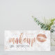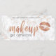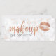 Diseño elegante y moderno con textos y labios de maquillaje en oro rosa de cobre, textura de mármol blanco y de cobre.