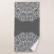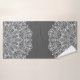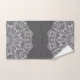 Mandala floral blanca elegante se extiende sobre un fondo gris medio.