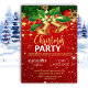Invitación formal, elegante, de Navidades rojos con campanas de Navidades dorados y hiedra sobre un fondo rojo y brillantes manchas de oro.