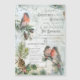 Composición de Navidad vintage con mucho detalle, con encanto, con ephemera rústica de bosques que incluye robos, ráfagas cubiertas de nieve de pino y hueso, escritura grabada, poema de Navidades-Time con marcos de abedul grabado, y elegantes rollos blancos y florecientes con un fondo azul celeste.