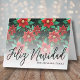 Elegante Poinsettia Flores Feliz Navidad Navidad Tarjeta de Navidad. Una tarjeta de Navidades festiva y divertida con un vibrante patrón de efecto pintado de flores de poinsettia roja, hojas verdes y acentos dorados y remolinos sobre un fondo casi negro. El diseño frontal incluye un efecto blanco sombrío en la parte inferior, donde "Feliz Navidad" está elegantemente escrito en un elegante tipo de letra, seguido por el nombre de tu familia para un toque personal. Dentro, todavía puede incluir una nota o dejarla en blanco para un mensaje manuscrito. Este diseño animado y colorido es perfecto para enviar alegría de vacaciones mientras se captura la calidez y la elegancia de la temporada. Ideal para seres queridos, amigos o colegas, esta tarjeta única también puede ser personalizada para un toque personal o de negocios. Elegante Festividad Única Verde Rojo Negro Flores de Poinsettia Script Feliz Navidad Tarjeta de Navidad Feliz Navidad. Disponible como tarjeta impresa o como tarjeta digital descargable para compartir a través de correo electrónico o imprimir localmente!