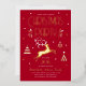 Añade un toque de lujo a tus invitaciones de fiesta con un verdadero Relieve metalizado de oro. Este elegante diseño presenta ilustraciones de estilo vintage inspirados en la opulencia de la época Art Deco. Incluye reno en ascenso, árboles navideños festivos y estrellas, junto con una elegante tipografía retro. Personalice la plantilla con los detalles de su evento: se puede incluir información adicional en el reverso. Un diseño único que combina un estilo atemporal con un toque moderno. Los verdaderos elementos de Relieve metalizado están disponibles en oro, plata o oro rosa. Colores impresos: rojo profundo, blanco y Relieve metalizado dorado.