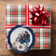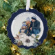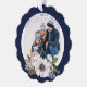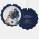 Elegante tarjeta de adorno navideño con flores azules y tu foto favorita