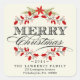 Etiquetas cuadradas de sellado de sobres con dirección de retorno — Elegante estilo vintage pegatinas navideños para tarjetas de felicitación, paquetes e invitaciones de fiestas de temporada. Hermosa corona roja con diseño de poinsettia sobre fondo de pergamino de crema de marfil y tipografía decorativa con estilo retro de letras negro. Agregue su nombre de familia, dirección o texto de mensaje personalizado. Luminosa y alegre manera clásica, moderna y elegante de enviar alegres saludos de vacaciones de invierno a todos sus amigos y familia con un encanto tradicional moderno, único y rústico. Tipografía de navidades - Elegante colección de guirnaldas Holly